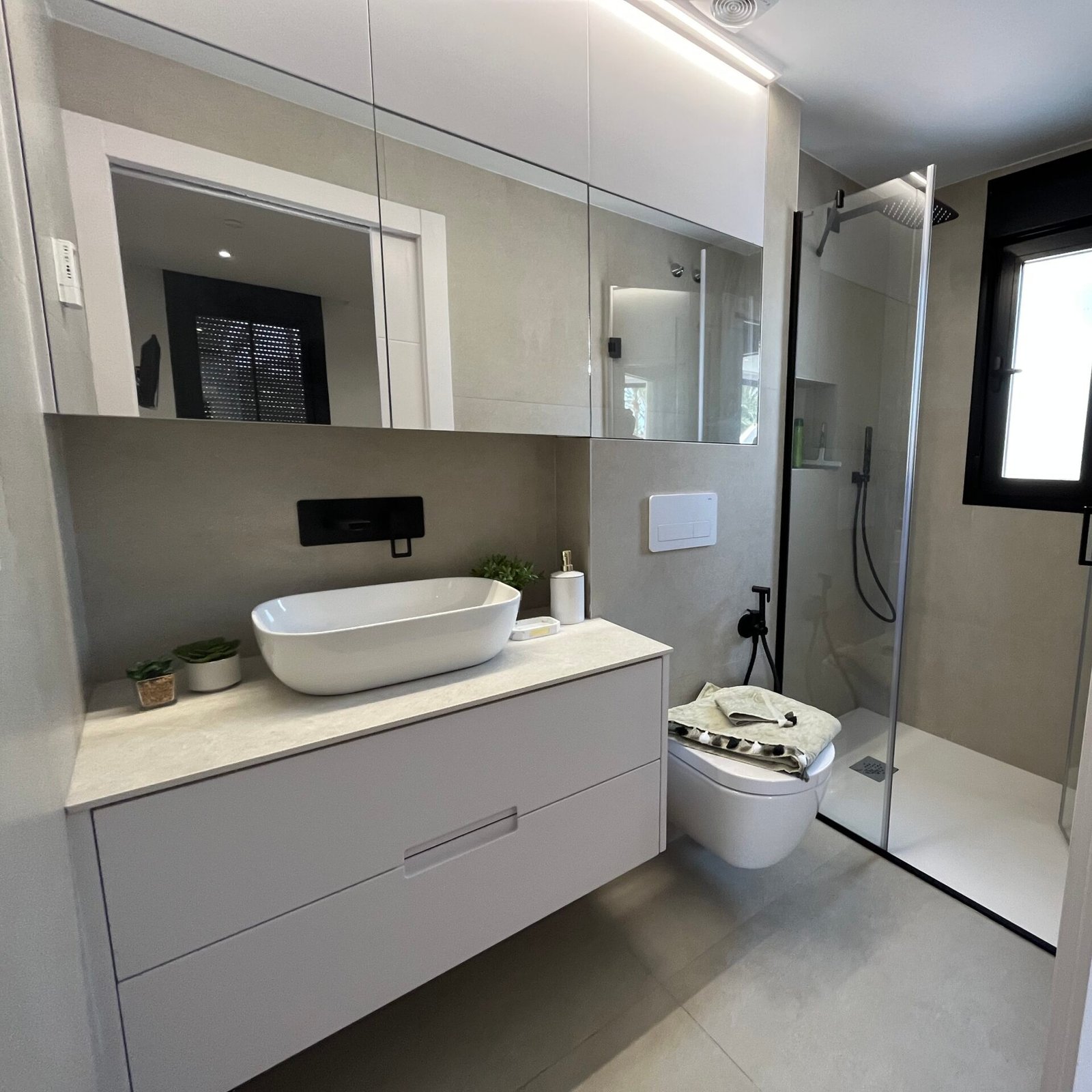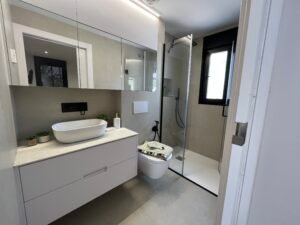 Het huis bevat twee moderne badkamers. Beide badkamers zijn smaakvol ingericht en voorzien van een inloopdouche, wastafel, toilet en bidet.