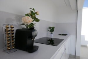 Het ruime dakterras is een oase van luxe en ontspanning en bevat een volledig uitgeruste buitenkeuken met moderne apparatuur, waaronder een elektrische grillplaat, waardoor je ook heerlijk buiten kunt koken.