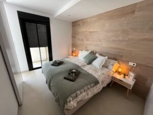Het appartement biedt twee ruime slaapkamers met een serene uitstraling. De slaapkamers zijn voorzien van comfortabele bedden, zacht beddengoed en zijn aangekleed met decoratieve accenten. De gasten slaapkamer biedt de mogelijkheid